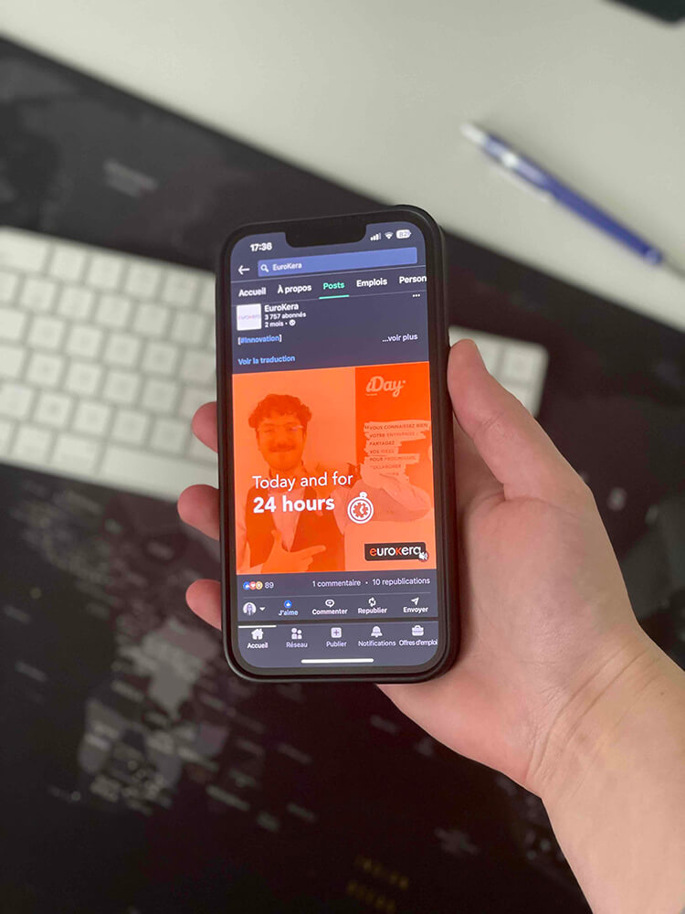 Nous accompagnons EuroKera depuis 2023 dans la création de contenus pour sa page entreprise LinkedIn, avec différents types de formats (photo, vidéo, carrousel…).
